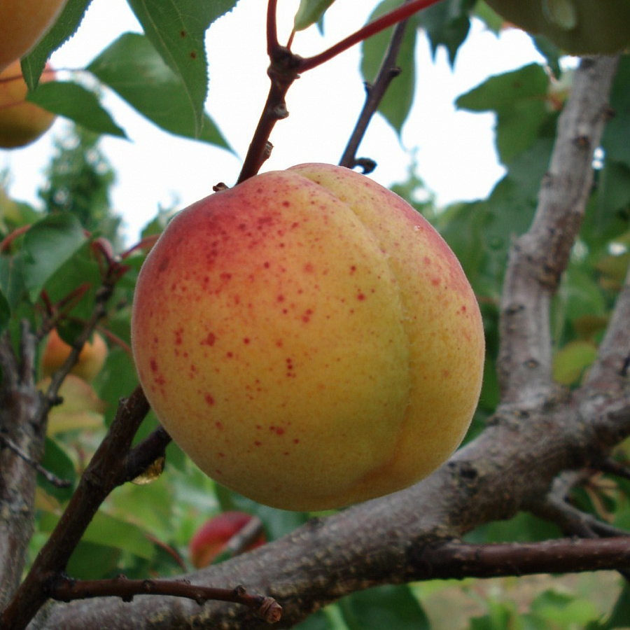 Абрикос Обыкновенный Чемпион севера - вырастает около 5 м, ветви дерева толстые, крепкие, а крона округлой формы и не слишком густая. Цвести данный сорт начинает на третий год, плодоносить начинает на 4 год. Созревание плодов обычно приходится на конец июля – начало августа. Внутри крупная косточка, которая легко отделяется от мякоти. Мякоть средней сочности, сладкая, ярко-оранжевого цвета. Кожица средней толщины, весьма крепкая и не трескается в жару или дождливую погоду. Плоды обладают хорошей транспортабельностью. Отличная устойчивость к заморозкам — дерево способно перенести холодную зиму без снижения урожайности. Спокойно переносит понижение температуры почвы до -30 °C. Устойчивость к болезням — абрикос редко подвергается нападению вредителей и болезней. Требует лишь периодической профилактики в виде опрыскиваний. Неприхотливость — деревья нуждаются в элементарном уходе.