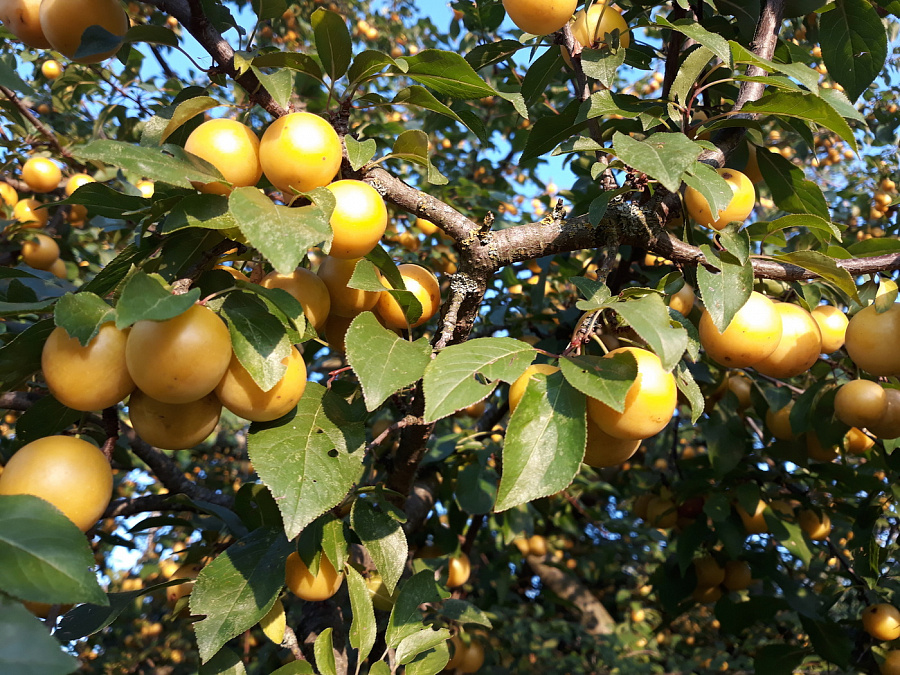 Саженцы алычи Гек будут давать крупные, немного ассиметричные плоды с мякотью желтой окраски. Вкусовые качества – на любителя: малосочные и сладко-кислые, что практически нейтрализуется при консервировании. Особенно хороши и полезны алычовый сок с мякотью и варенье.