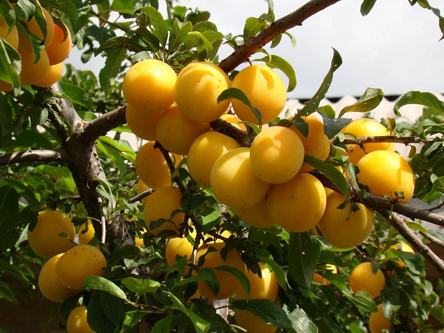 Саженцы алычи гибридной Злато Скифов устойчивы к болезням, зимостойки, относятся к самобесплодным сортам (для опыления следует высадить 2-3 сорта алычи). Дерево средней рослости, с редкой раскидистой кроной, быстрорастущее. Плоды желтые крупные (до 36 г), обладают сочной волокнистой плотной мякотью, спеют в начале июля, пригодны для переработки. Вкус легкий сладковато-кислый, десертный. Крупномер отличается стабильной ранней урожайностью.