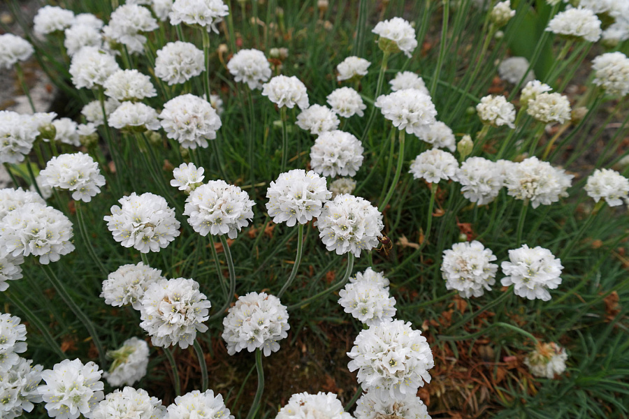 Рассада аремерии Вайт (White) достаточно часто высаживается в качестве покрывающего оставшиеся открытыми участки грунта растения. Популярность обусловлена высокой декоративностью как во время цветения так и после него. Образует шаровидные белоснежные соцветия на относительно длинных цветоносах. Растение способно неплохо переносить засуху и выдерживать дефицит влаги. С зимовкой у цветоводов, выращивающих аремерию также проблем обычно не возникает, разве что в особенно влажные и теплые зимы возможна такая проблема как загнивание корня. Сорт можно рекомендовать начинающим цветоводам.