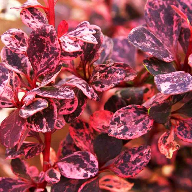 Саженцы Барбариса Тунберга Harlequin (Арлекин) имеют пурпурно-красный эффектный цвет, а молодой прирост имеет розовый штрих по листу, чем привлекает к себе повышенное внимание. Раскидистая крона с течением времени меняет цвет на пурпурно-коричневый. После опадания листьев кустарник будут украшать многочисленные плоды небольшого размера, до 10 миллиметров, красного цвета. Барбарис Тунберга Harlequin предпочитает расти в почве с высоким щелочным показателем, погибает от переизбытка влаги, но устойчив к засухе и жаре. Выносит холод, но зимой возможно подмерзание верхних частей побегов. Высота крупномера варьируется от 100 до 120 см, рост медленный.