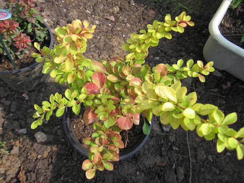 • листва – желтые с розоватой каймой листья осенью становятся оранжевыми. Саженцы барбариса Диаболикум легко приживаются на почве с любым уровнем кислотности. Кустарники обладают высокой устойчивостью к вредителям и болезням.