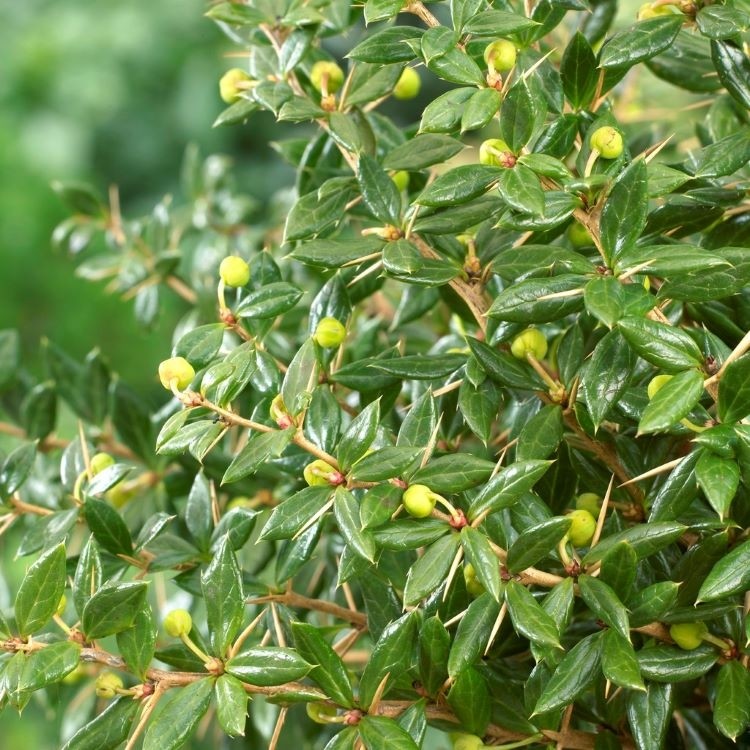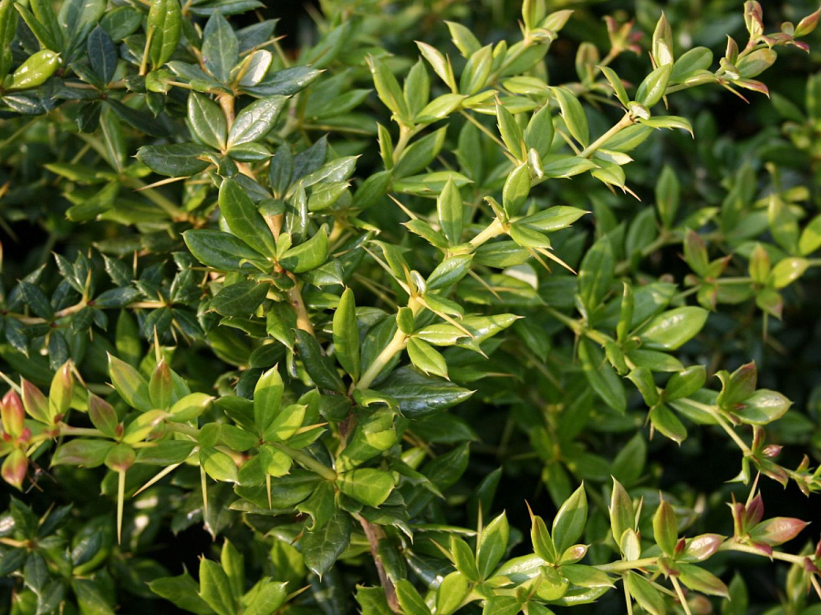 Саженцы Барбариса Фрикарта Амстельвеен (Berberis frikartii) – гибрид, выведенный в Голландии, относится к низкорослым кустарникам, высотой до 100 сантиметров. Крона его раскидистая, образована из изогнутых, дугообразных ветвей, диаметром до 200 сантиметров. Ежегодный прирост – 5 сантиметров. Сорт Фрикарта Амстельвеен отличает наличие игловидных шипов на ветвях, до 1 сантиметра. Цветет кустарник в мае желтыми цветками. Его листья эллиптической формы зеленого тона сверху и серебристого-серые снизу. Плоды сине-черного оттенка, не ядовитые, но пригодны в пищу только животным. Кустарник не прихотлив, не боится заморозков и засухи. Не требователен к почвам.