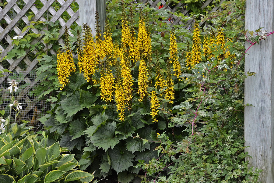 Этот вид бузульника отличается высотой 50-60 см, что делает его идеальным для групповых посадок. Он предпочитает влагоемкие почвы и тень, поэтому выберите для него укромное место в саду. Бузульник узкоголовчатый Bottle Rocket не требует сложного ухода: достаточно регулярного полива и удобрений.