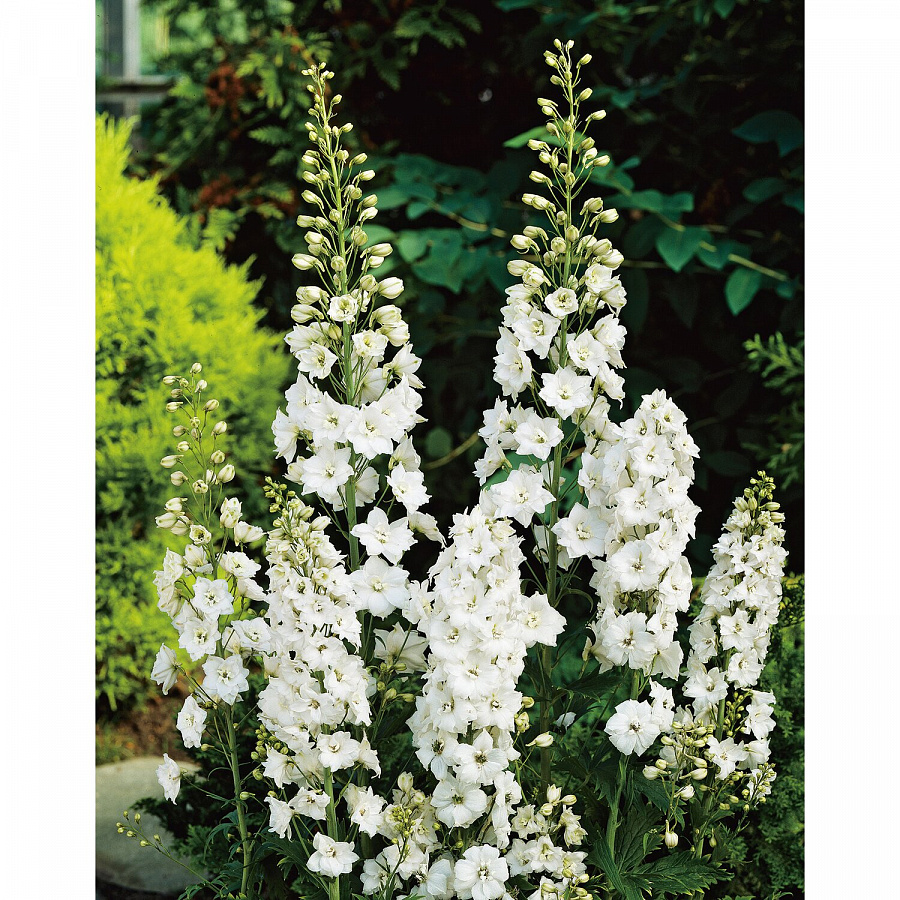 Сочетание белых цветов и зеленых листьев создаст неповторимый образ в вашем саду, привлекая восхищенные взгляды гостей и соседей. Дельфиниум Galahad порадует вас своими изысканными цветами в течение двух сезонов, радуя глаз и даруя радость каждому, кто заглянет в ваш сад.