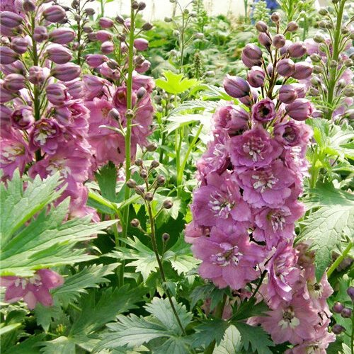 Дельфиниум высокий "Дельфина Роуз Вайт Би" - это изысканное растение с неповторимым очарованием. Его стебель достигает высоты 40-50 см, а цветки радуют глаз своим розовым оттенком и размером 4-5 см. Листья имеют уникальную форму, что делает этот сорт особенно привлекательным для любителей красоты в саду.