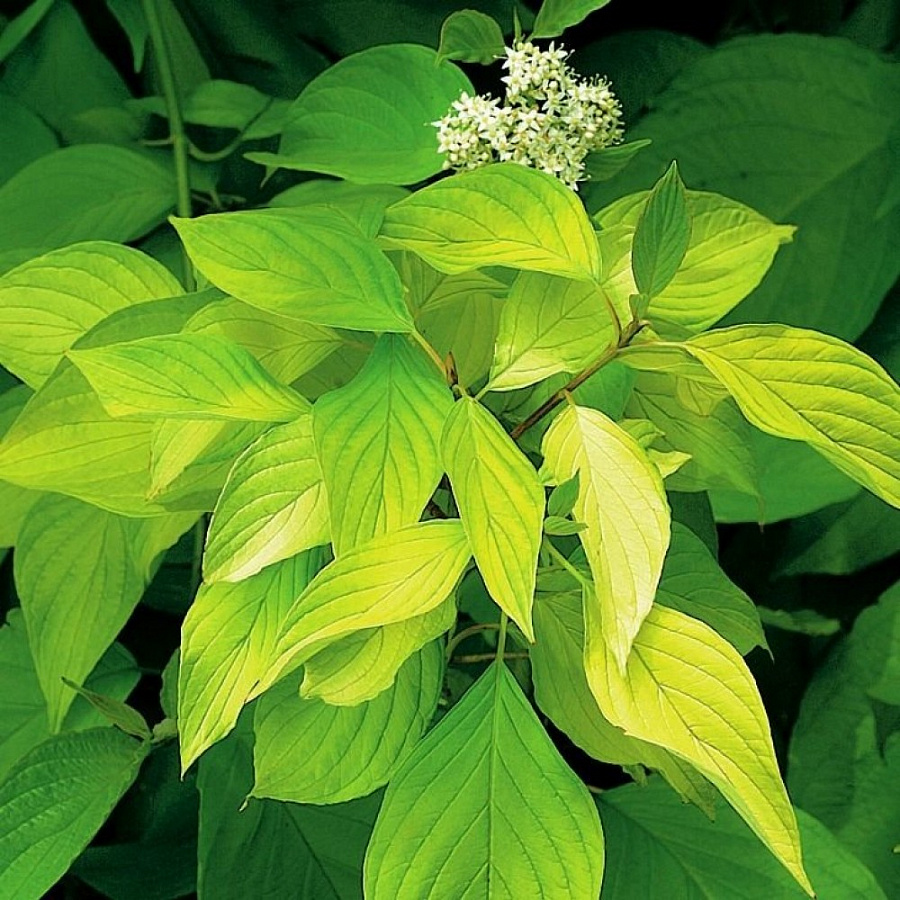Саженцы дерна белого Ауреа (Aurea) со временем трансформируются в цветущий плодоносящий крупномер, высота которого достигает двух метров. Листья взрослого растения имеют матово-желтый цвет. Побеги прямые, красного или бордового цвета. Цветки имеют кремовый или белый цвет. Растение может цвести два раза – весной и осенью. Позднее цветение отличается тем, что на кустарнике рядом с цветками висят плоды голубого цвета. Если растение посажено в тени, листья могут приобрести золотистый оттенок. К почве неприхотлив, морозоустойчив. Но желательно высаживать в плодородных и сырых местах. Дерен хорошо размножается: