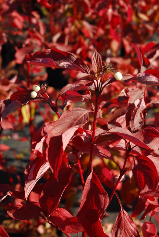 Саженцы кустарника Минбат (Minbat) эффектные из семейства кизиловых растения с красными побегами и листьями от зеленого цвета весной до пурпурно-красного осенью.