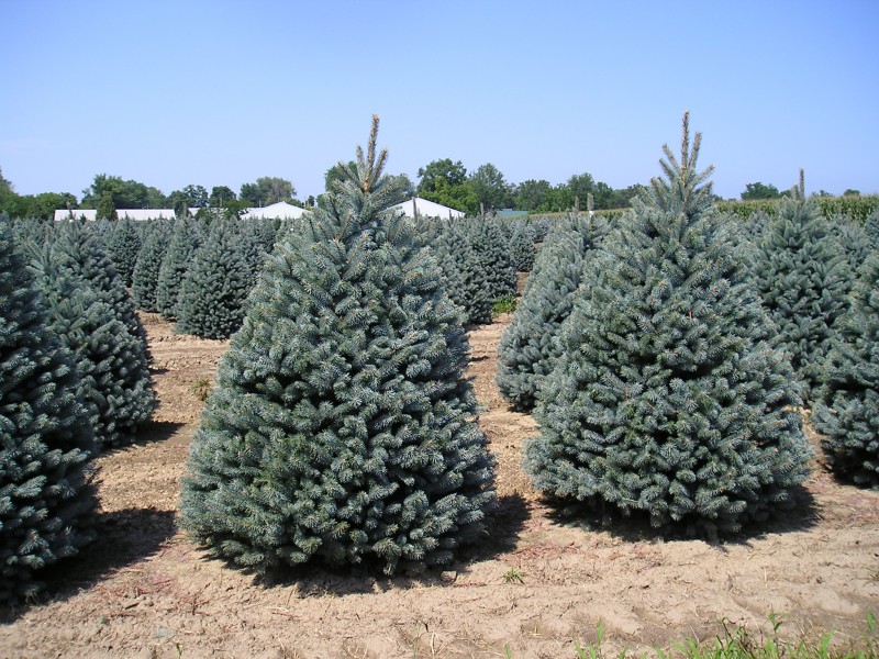 Саженцы ели голубой Фат Альберт (Fat Albert) вырастают в широкие деревья с пирамидальной кроной сизого оттенка. Издалека действительно напоминают коренастых толстяков, чем и оправдывают свое название сорта. У ели голубой Фат Альберт очень густая крона, с жесткой хвоей насыщенного голубого цвета. Высота взрослых крупномеров до 2500 метров, ширина 4,5м. Годовой прирост очень быстрый для сосны – 20-30 см. Шишки прорастают зелеными и созревают до коричневых.