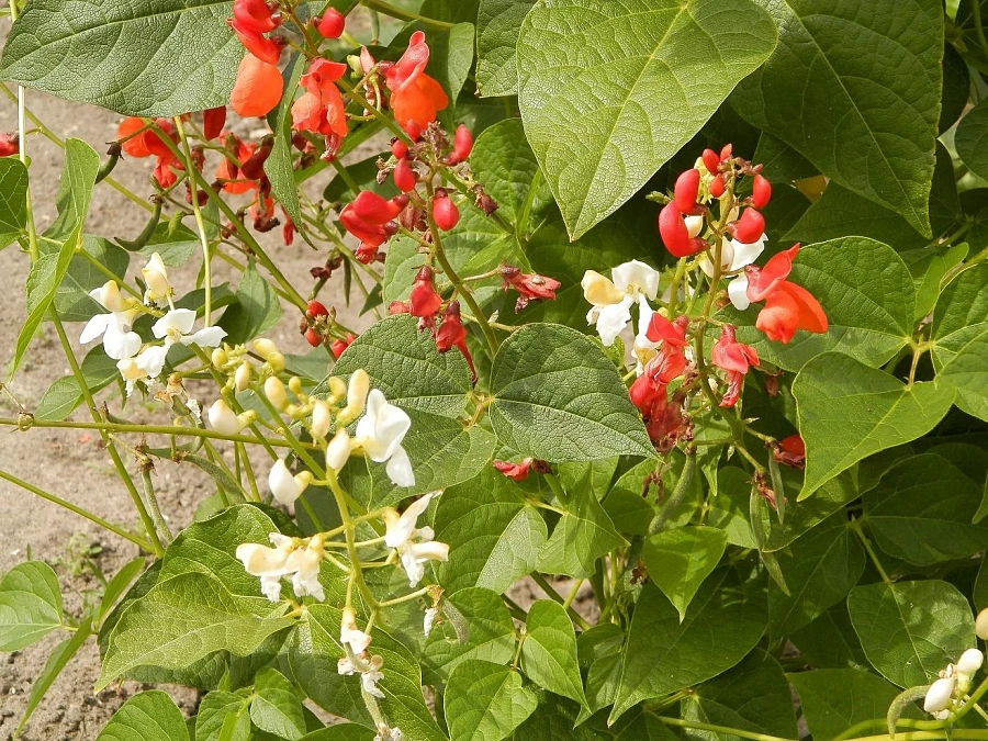 Фасоль вьющаяся смесь окрасок - это удивительное растение, которое поразит вас своей красотой и изяществом. Ее стебли достигают высоты до 250 см, создавая великолепные зеленые завитки, усыпанные цветами белого, лососево-розового и оранжево-красного оттенков. Листья фасоли имеют необычную форму, напоминающую сердце, что делает это растение еще более привлекательным.