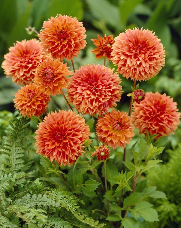 Луковицы георгины бахромчатой Ориндж Фубуки (Dahlia Orange Fubuki) относятся к красивоцветущим травянистым многолетникам. Сорт был выведен в Нидерландах в 2009 году. Луковицы рекомендуется высаживать на солнечных участках, закрытых от сквозняков. Нормально переносит полутень. Расти предпочитает на плодородной почве. Данный сорт относится к самоопыляемым. Взрослые кусты в высоту вырастают около 80 сантиметров. Георгин отличается продолжительным цветением, которое длится с июля до начала октября. Распустившиеся соцветия в диаметре около 12-15 сантиметров. В центре лепестки насыщенного оранжевого оттенка, по краям светло-оранжевая кайма.