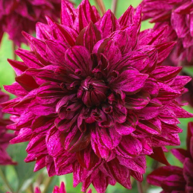 Георгина декоративная арт акт - это великолепное растение с фиолетовыми цветками, украшенными красными, бордовыми и темно-пурпурными штрихами. Ее стебель прочный и прямой, достигает высоты до 80 см, что делает ее идеальным выбором для создания ярких цветочных композиций в саду или на клумбе. Листья георгины имеют интересную форму и образуют пышный кустарник.