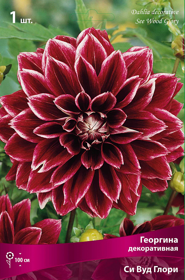 Георгина декоративная "Селлвуд Глори" - это великолепное растение с темно-бордовыми цветками и белыми кончиками, которое поразит вас своей красотой. Ее стебель прочный и устойчивый, а размеры растения позволяют ему вырасти великолепным и внушительным. Листья георгины имеют интересную форму, что делает ее еще более привлекательной для глаз.