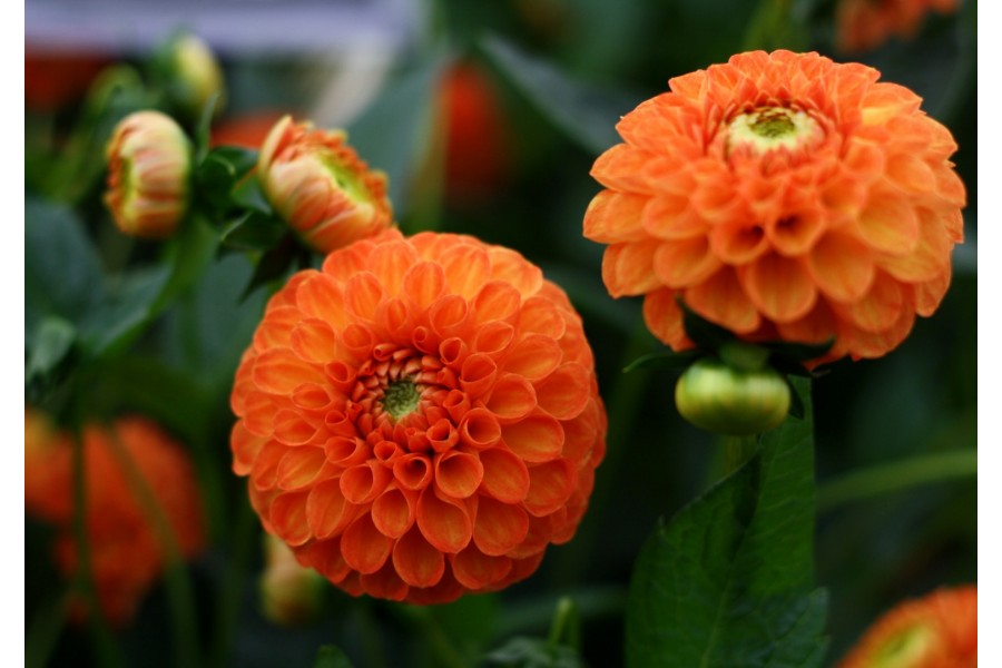 Нью Бэйби цветет корзинками, состоящими из закрученных лепестков оранжевого цвета. Данный сорт отличается своим непрерывным цветением. Диаметр цветка небольшой и составляет 5-6 сантиметров. Стебель тонкий, его обязательно нужно подвязывать к опоре, чтобы он не сломался под тяжестью бутона.