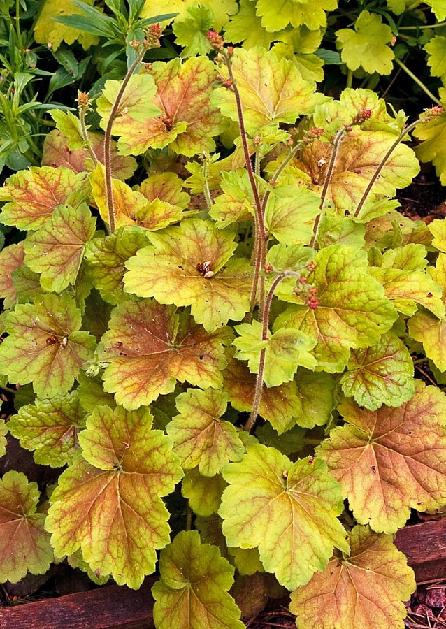 Рассада гейхеры Миракл(Miracle) и семена этого сорта вполне оправдывают своё название – «Чудо». Листья многоцветные, меняют цвет от ярко-зелёного до бордово-малинового, подобно хамелеону, реагируя и на солнечное освещение, и на характер грунта, и на погоду. Характеристика сорта Miracle: