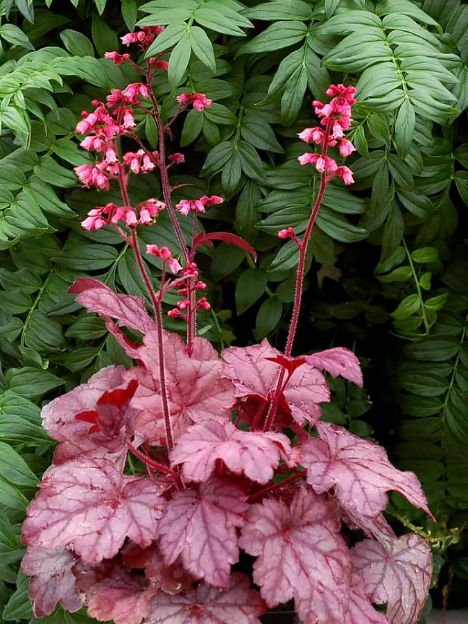 Рассада гейхеры Грейп Соуде (Grape Soda) наполнит яркими красками смешанные посадки. Этот сорт отличается от других насыщенной розово-фиолетовой расцветкой, которая будет заметна издали на фоне зеленых растений. Во второй половине лета розетка выпускает цветоносы с красивыми розовыми соцветиями, которые будут вас радовать до сентября.