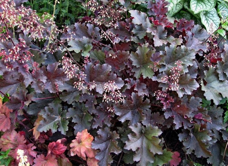Рассада гейхеры Пурпл Петикоэтс (Purple Petticoats) украсит ваш сад сказочными гофрированными листьями, пурпурные края которых, как будто, припорошены инеем. В начале лета потрясающий вид растения будет дополнен мелкими кремовыми цветочками. Этот сорт широко применяется в ландшафтном дизайне для создания ярких акцентов смешанных посадок и формирования миксбордеров.