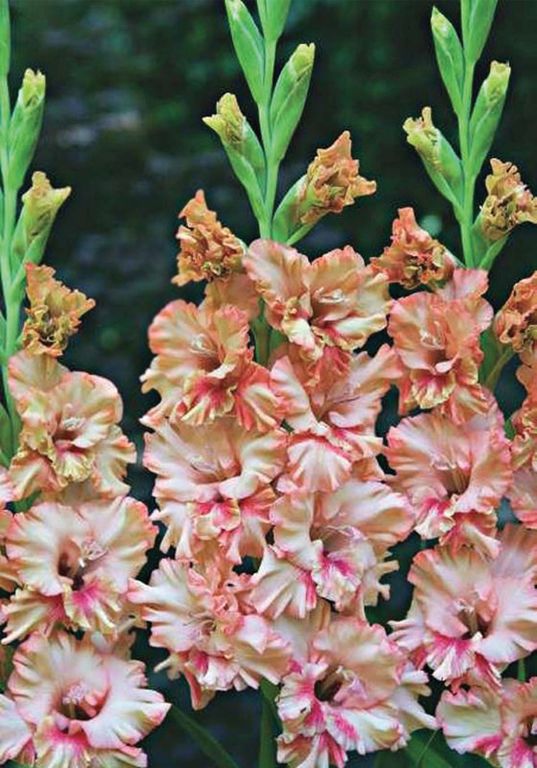 Луковицы гладиолуса гибридного Kissy Ruffle позволят вырастить потрясающие колосовидные соцветия, состоящие из крупных гофрированных цветов с лососевыми лепестками. Высота взрослого растения варьируется от 90 до 110 сантиметров. Кусты с крепкими стеблями можно использовать для оформления бордюров, украшения мест отдыха, создания ярких цветников. Этот сорт также выращивают на срезку, чтобы составлять роскошные букеты. Луковицы гладиолуса гибридного Kissy Ruffle предпочитают слабокислую рыхлую дренированную почву. Место размещения должно быть хорошо освещено, но защищено от полуденного жаркого солнца.