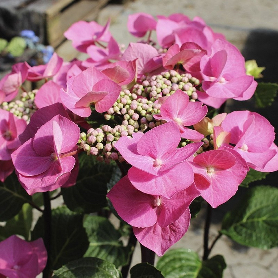 Гортензия крупнолистовая мираж - это великолепное растение с ярко-розовыми цветками, которые радуют глаз своей красотой в течение трех сезонов: весны, лета и осени. Ее высота может достигать 140-160 см, а диаметр цветка до 150 см, что делает ее настоящим украшением любого сада. Листья гортензии имеют ярко-зеленую окраску и прекрасную форму, что придает растению особый шарм.