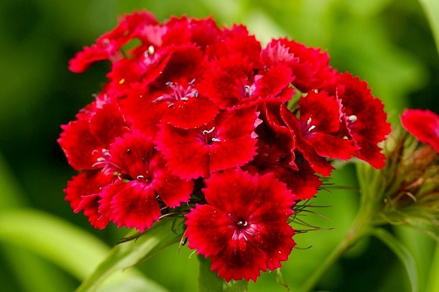 Гвоздика турецкая алая красавица - это настоящее произведение искусства природы. Ее стебель прочный и изящный, достигает высоты до 50 см, украшенный яркими красными цветками. Листья этого растения имеют элегантную форму и насыщенный зеленый цвет, что делает его по-настоящему великолепным акцентом в вашем саду.