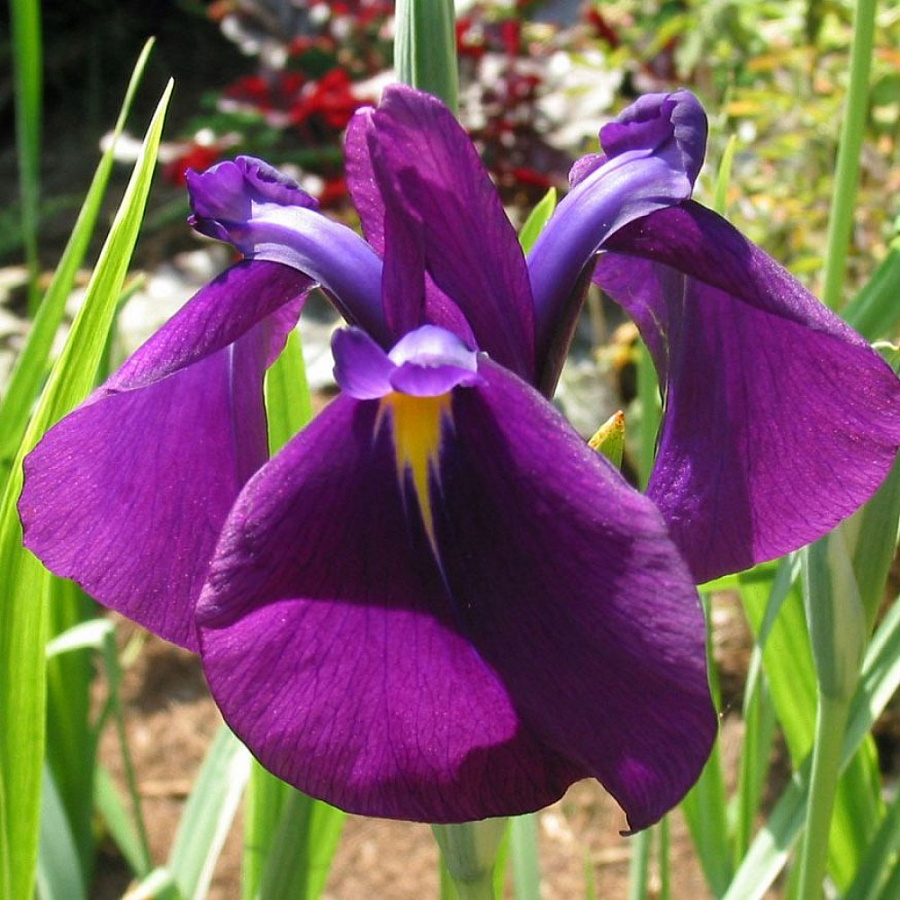 Рассада ириса Ауреваригата (Aureovariegata) доступна уже многие годы, но неизменно пользуется спросом у садоводов. Растение достигает в максимуме 30-50 сантиметров. Эффектна окраска листьев — зелёные, с продольными золотисто-жёлтыми полосками. Цветонос высотой до 80 см, в верхней части ветвится на много бутонов. Цветы от тёмно-синего и фиолетового до сиренево-голубого оттенков, появляются в мае-июне. Для соблюдения чистоты вида желательно при размножении не пользоваться семенами, для чего их предварительно срезают. Ирис Ауреваригата нуждается в солнечном свете. Тяжело приживается как в пресыщенных влагой почвах, так и в засушливых. Наиболее удачный вариант — плодородные, хорошо дренированные почвы с естественной влажностью. Часто применяется для оформления берегов малых водоёмов.