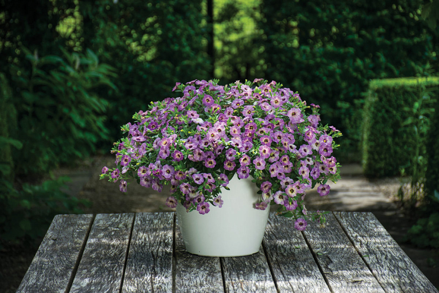 Саженцы калибрахоа Лавандер Сорбет (Calibrachoa Chameleon Lavender Sorbet) – полуампельное растение-хамелеон, меняющее окраску от белого до фиолетово-голубого.