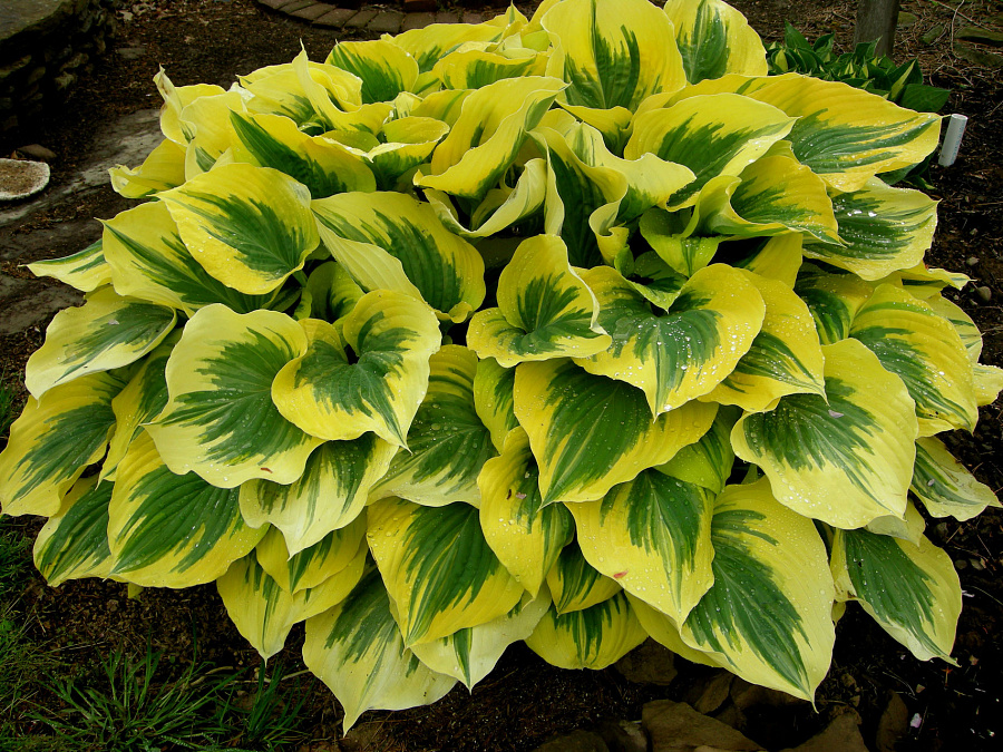 Летняя окраска листвы : тёмная серовато-зелёно-голубая окраска в центре, кайма кремово-желтая