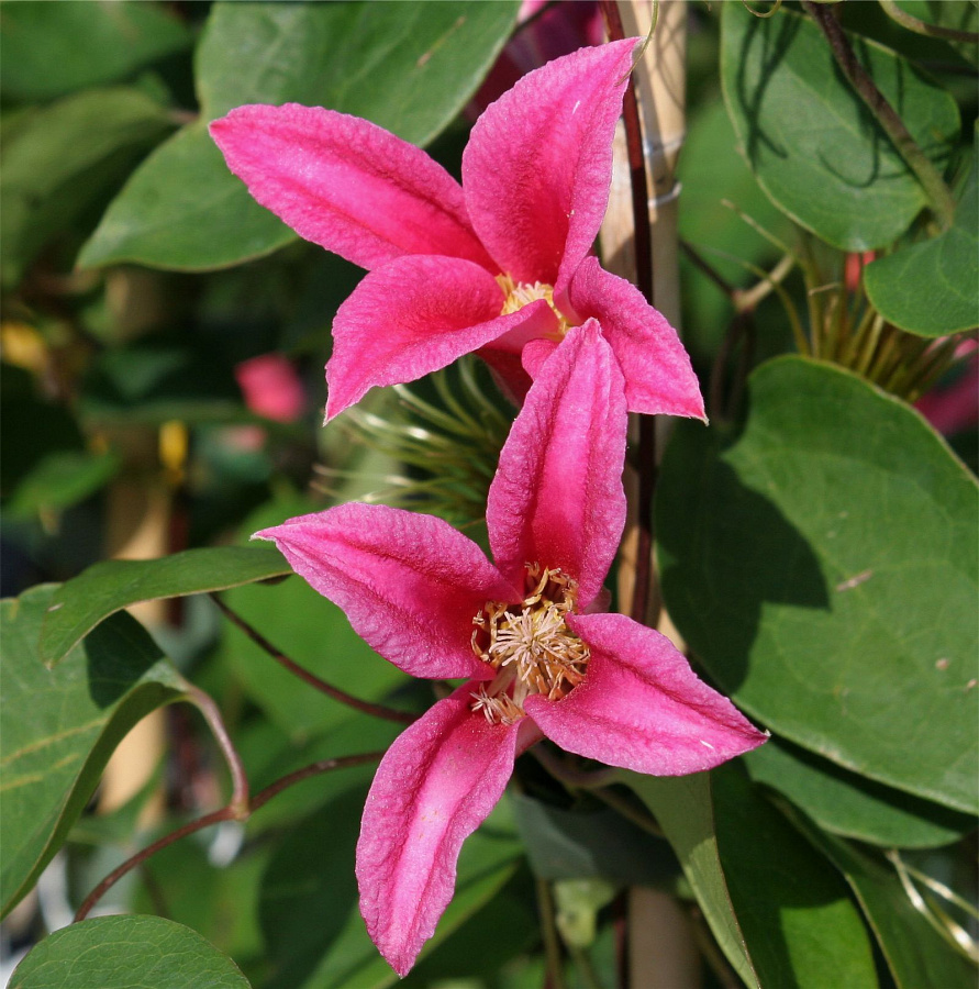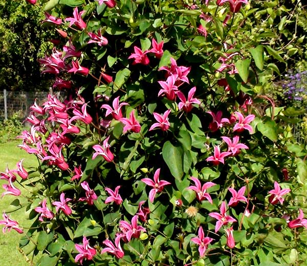 Саженцы клематиса гибридного Хэппи Диана (Happy Diana) предпочитают защищённые и хорошо освещенные участки с плодородной почвой.  Цветки диаметром 4-7 см, по форме напоминают лилиецетные тюльпаны, темно-розовые. Цветет обильно и продолжительно с июня по сентябрь. Клематис гибридный Хэппи Диана (Happy Diana) благодаря листовым хвостикам способен лазать на высоту до 400 см, рекомендуется высаживать возле беседок, арок, вдоль ограждений и других садовых конструкций. Подходит как для групповых посадок, так и для отдельно стоящей шпалеры.