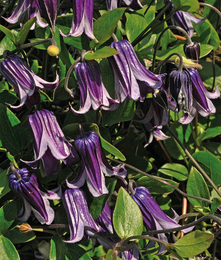 Саженцы клематиса гибридного Роогучи (Rooguchi) предпочитают солнечные места с плодородной почвой, хорошо сохраняющей влагу. Длина побегов составляет 150-200 см. Лианы только опираются на шпалеру, но не вьются вокруг нее, к опоре побеги рекомендуется подвязывать, в противном случае растение развивается как почвопокровное. Цветение обильное и беспрерывное, длится с июня по сентябрь. Цветки колокольчиковидные в диаметре достигают 4-5 см, окрашены в фиолетово-синий цвет, края лепестков светлые. Клематис гибридный Роогучи (Rooguchi) применяют в одиночных и групповых посадках, в сочетании с многолетними декоративными растениями, кустарниками. Подходит для выращивания в контейнерах.