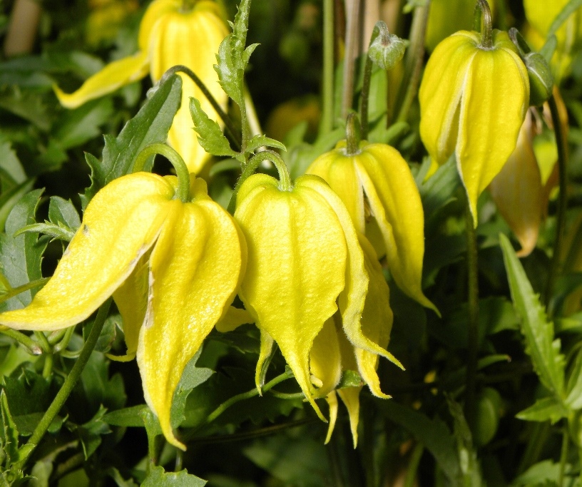 Саженцы клематиса Тангутского (Clematis tangutica) малотребовательны к условиям выращивания. Хорошо зимуют, переносят засуху и полутень. На открытых солнечных местах лиана быстро разрастается. Длина лиан достигает 250-300 см. Саженцы рекомендуется высаживать вдоль ограждений, решеток, стен и других объектов, способных послужить опорой. Цветет клематис тангутский (Clematis tangutica) с конца весны до самых заморозков (июнь-сентябрь). Цветки поникающие, желтого цвета, диаметром до 5 см. По окончании цветения, растения не теряют декоративность, на лианах появляются пушистые светлые соплодия.