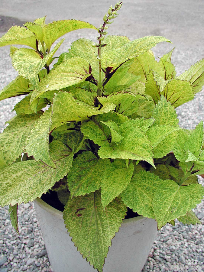 Колеус Визард Пайнэппл - это удивительное растение с яркими зелеными листьями, которые создают неповторимый тропический вид. Сорт wizard pineapple порадует вас своей высотой до 25 см и формой листьев, которая добавит экзотики вашему саду. Это растение отлично подходит для групповых посадок и выращивания в полутени, что делает его универсальным выбором для любого сада.