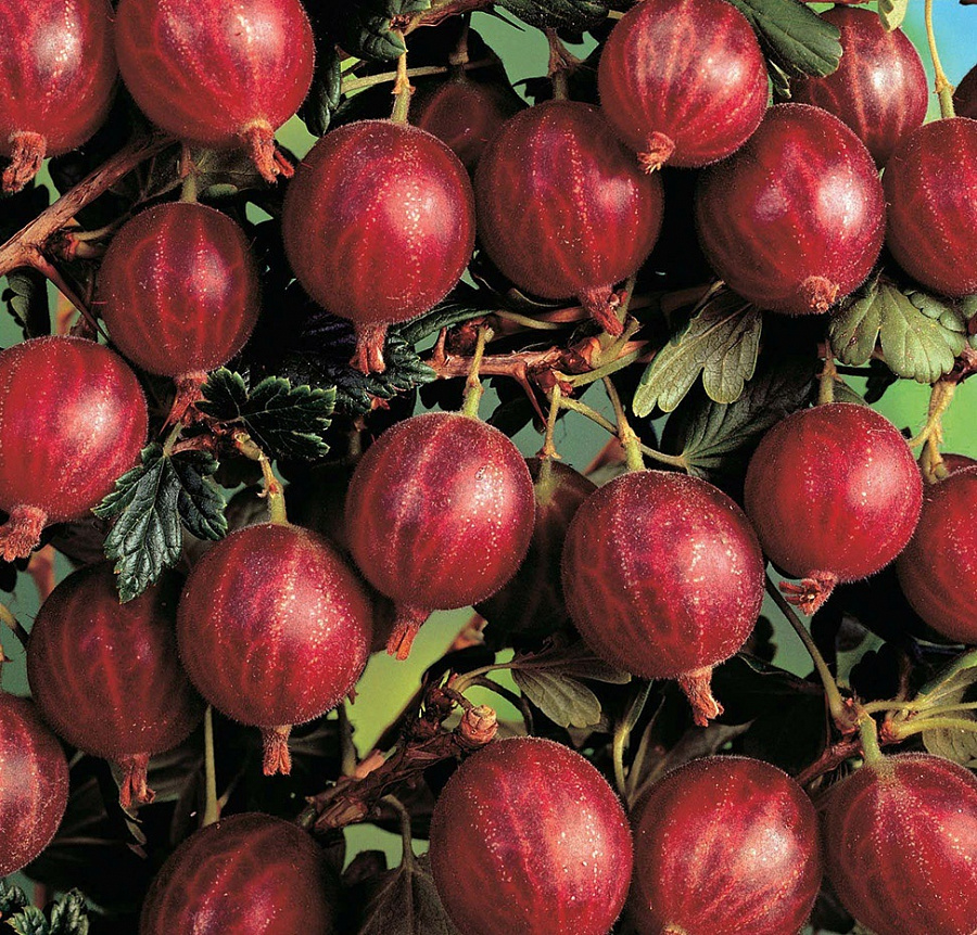 Саженцы крыжовника Десертный, в отличие от многих других сортов крыжовника, не имеют повышенной шиповатости, что значительно облегчает сбор урожая. Выведен сравнительно недавно и вобрал в себя лучшие качества ягодных культур. Крупномеры славятся морозостойкостью, долголетием и высокой урожайностью. На высоких прямых кустах может разместиться почти 10 кг сладких и сочных плодов грушевидной формы. Урожайная пора наступает довольно рано - во второй половине июня.