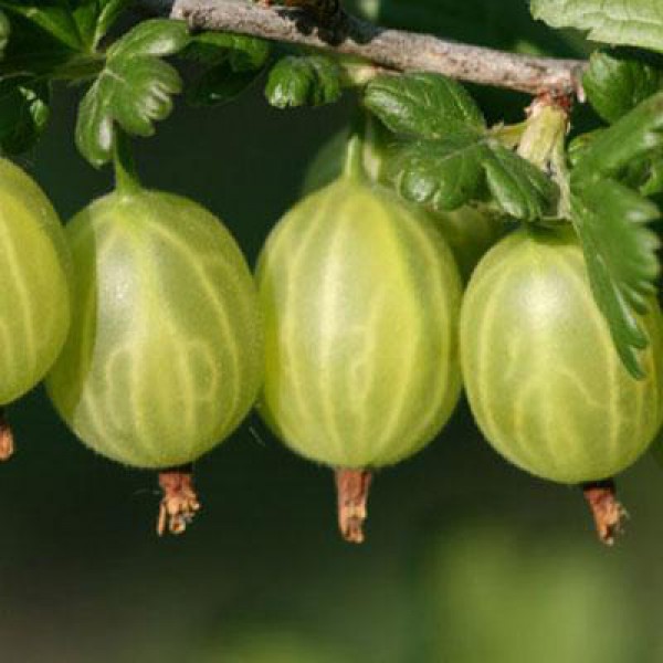 Саженцы Крыжовника Уральского бесшипного дополнят коллекцию плодовых растений. Одно из отличий сорта — полное отсутствие шипов. Раскидистый, средней высоты кустик с большими побегами радует высокой урожайностью. Плодоносит на второй год после посадки, срок созревания средний. Листья слегка волнистые, зеленые, без опушения. Ягоды крыжовника овальные, крупные, около 8 грамм, изумрудно-зеленые, кисло-сладкие. Куст морозостойкий, не подвержен мучнистой росе и другим заболеваниям. В период сбора урожая с одного куста снимают 6,5 килограмм ароматных сладких ягод.