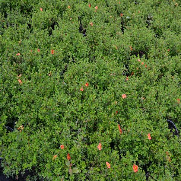 Саженцы лапчатки кустарниковой Ред Айс (Red Ace) вырастают в небольшой кустик с кроной до полуметра в высоту и около метра в ширину. Прекрасен период в жизни растения, когда на фоне темно-зеленой листвы появляются красно-оранжевые цветочки довольно крупного размера.
