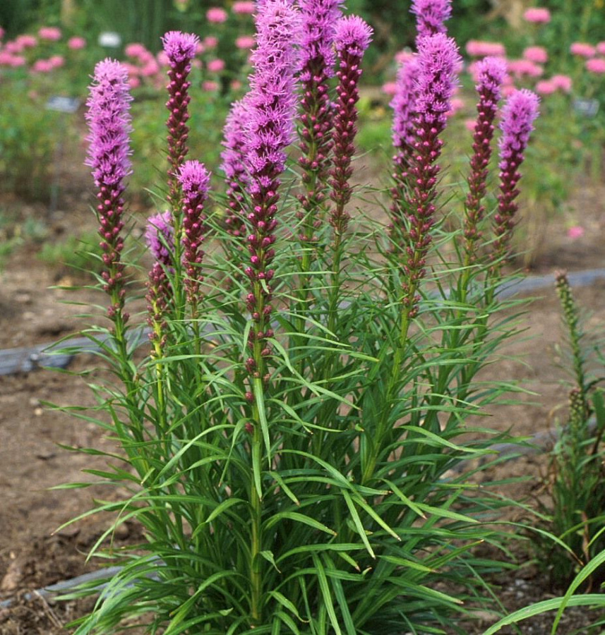 Рассада лиатриса колоскового высаживается на солнечные участки. Почва должна быть легкой. Также хорошо бы внести удобрения. Из семян лиатриса колоскового вырастает среднее по высоте растение. Цветоносы могут подняться от 50 до 100 см. соцветия напоминают свечки. Цветочки густо усеяны по цветоносу. С июля по август они начинают раскрываться с верху в низ. Окраска цветов различная. Это может быть фиолетовый, розовый или белый оттенок. Рассада лиатриса колоскового любит влагу, но не переносит застоя воды. Перед зимой растение нужно обрезать под корень, чтобы оно лучше росло на следующий год.
