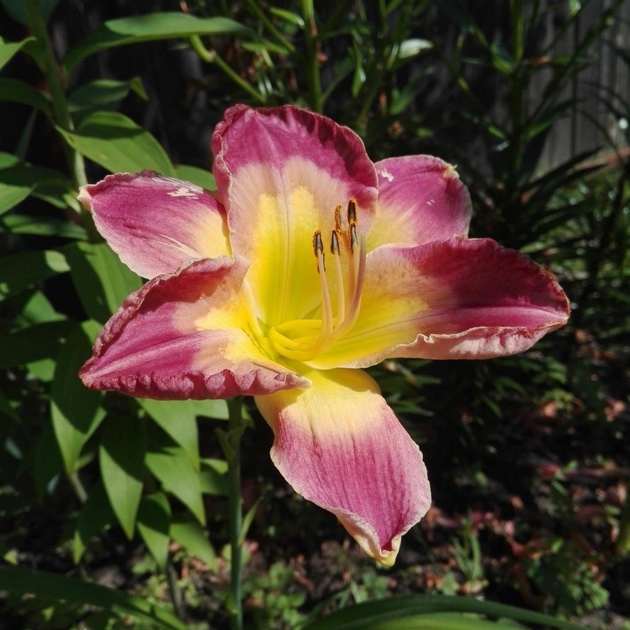 Окраска цветка : Розовато-лиловая с жёлтым центром