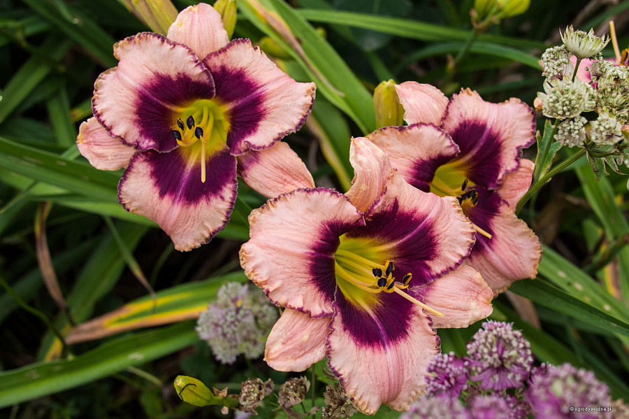• Окраска цветка : Розовая с пурпурным глазком и каймой