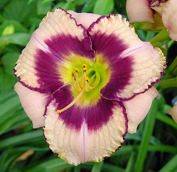 Цветки в диаметре около 13 см, кремово-розовые, со сливовым глазком и тонкой каймой. Горлышко желто-зеленое. Внутренние лепестки немного гофрированные, а внешние подкручены вниз. Длина цветоносов до 0,6 м. Лилейник подходит на срез. Обильное цветение возможно только при расположении на солнечном участке.
