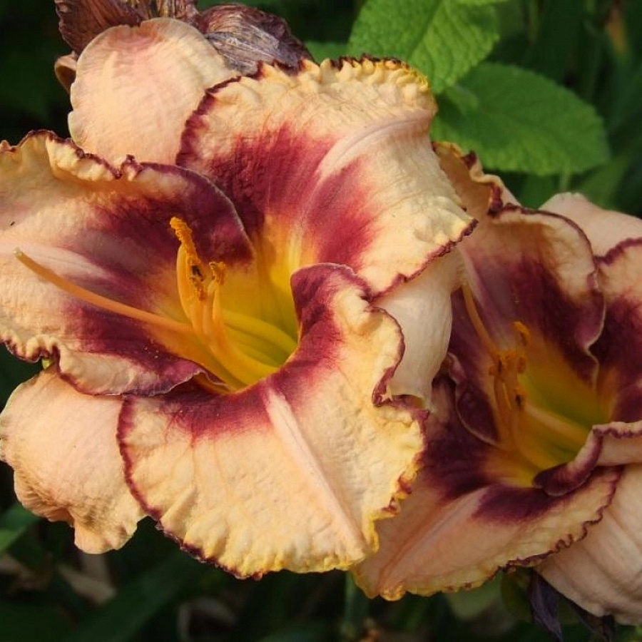Саженцы и рассада гибридного лилейника Дэринг Дилемма (Hemerocallis) привлекательны необычной расцветкой, неприхотливостью в выращивании, морозостойкостью. Сорт поздний, первые бутоны появляются в конце июля и в начале августа. Темно-зеленые листья декоративны весь сезон.
