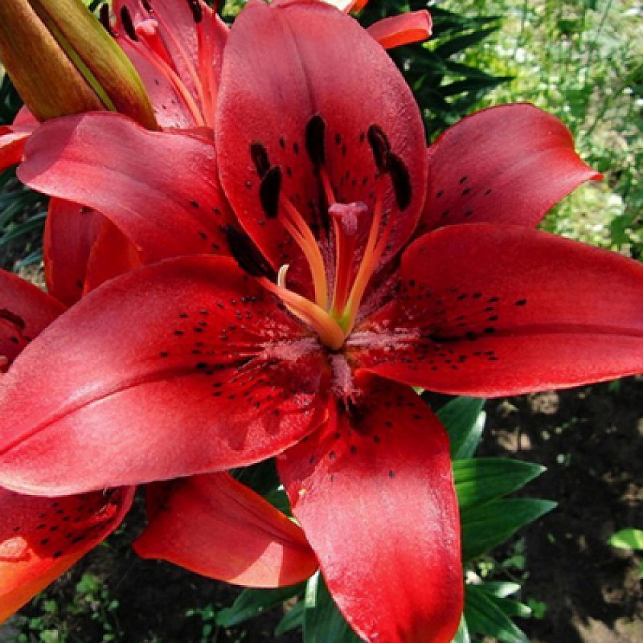 Саженцы и рассада Лилии ла-гибрид Ориджинал Лав (Lilium LA-hybrid Original Love) позволят расцвести в саду шикарным цветам. Винно-красные крапчатые, сочные, изысканные цветки до 20 см в диаметре принесут толику экзотики на клумбы и газоны. Зацветают в последней декаде июня, вырастают до 130 см в высоту. На каждом стебле завязывается 3-4 бутона, которые раскрываются поочередно. Без пересадки живут 3-5 лет на хорошо дренированной почве на светлом, хорошо проветриваемом месте. Могут расти в частично затененных уголках. На зиму требует укрытия только в первый год после посадки.