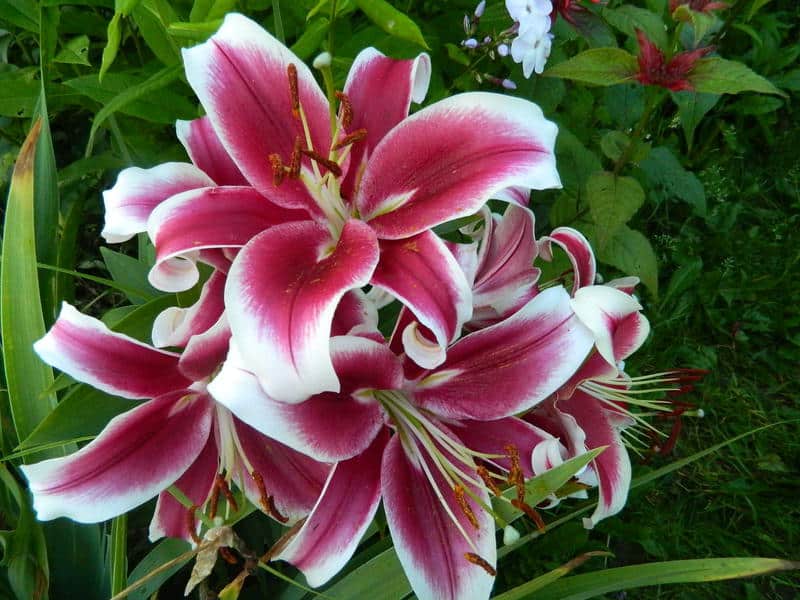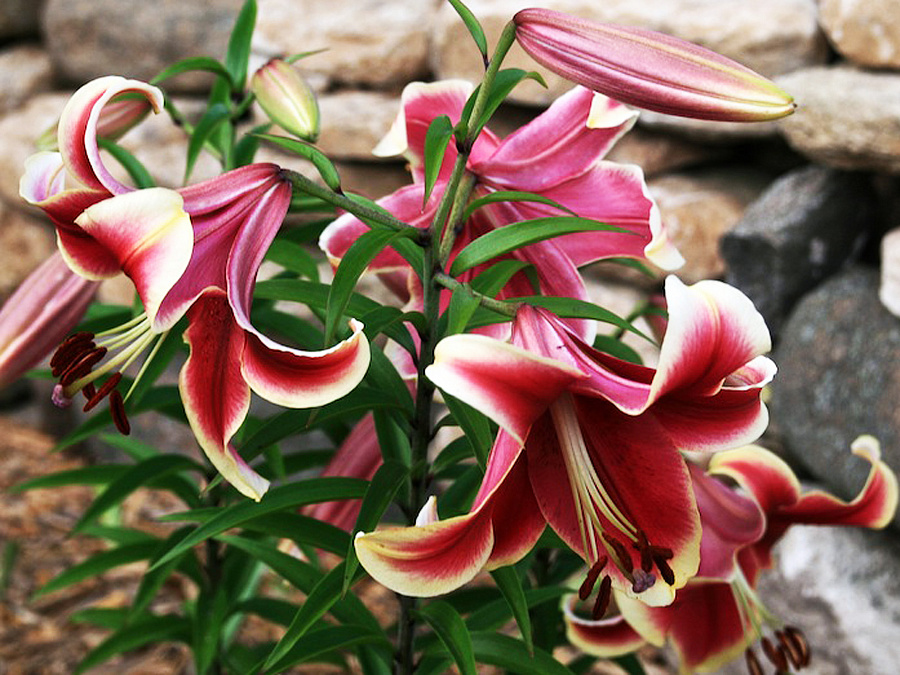 Лилия от-гибрид African Lady - это великолепное растение с красно-розовыми цветками, украшенными широким кремово-желтым кантом. Ее стебель достигает высоты от 120 до 180 см, а размер цветка составляет от 18 до 22 см. Цветение лилии приходится на июль и август, радуя глаз своей яркой окраской. Листья растения зеленые, создавая прекрасный контраст с цветами.
