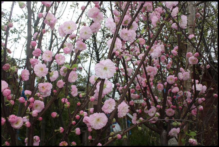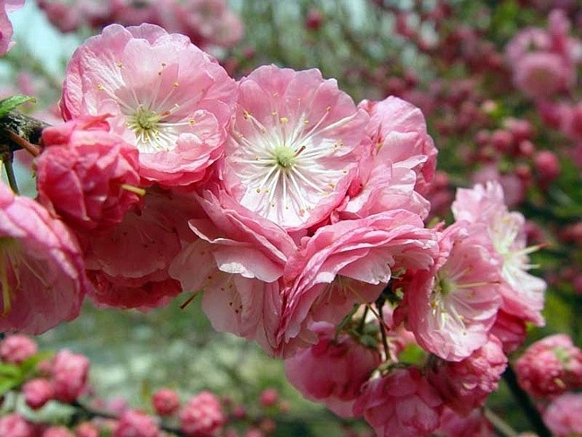 Саженцы Миндаля трехлопастного на штамбе (Prunus triloba) – эффектный кустарник, сменяющий листья каждый сезон. За свою красоту многие называют его японской вишней, но ничего общего, кроме внешнего сходства с сакурой у него нет. Цветы располагаются на побегах, образуют группку из двух бутонов. Лепестки имеют разные оттенки розового цвета. Цветёт этот вид миндаля в апреле-мае.