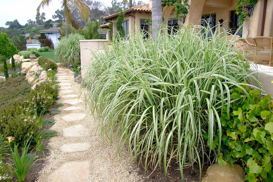 Рассада злака Вариегата (Variegatus) – модное в последнее время растение для декорирования. Эта многолетняя трава отлично заполняет большие участки. Она имеет прямые стебли с листьями тонкими зелеными по краю белыми. Растет очень медленно и долго сохраняет декоративность. Цветет в начале лета серебристо–серыми соцветиями в виде метелок.