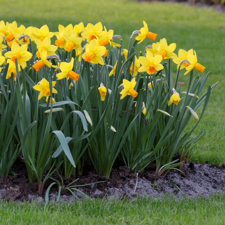 Луковицы нарцисса Карлик Jetfire отлично выглядит в композиции с другими весеннецветущими растениями (например, мускари, тюльпанами, фиалками). Цветочки удивительного насыщенно-желтого окраса, с сильно вытянутой оранжевой короной цилиндрической формы и с гофрированными краями. Размер бутона около 7 сантиметров в диаметре. Высаживают луковицы нарцисса Карлик Jetfire в питательную почву, на солнечные места или в легкую полутень. Расстояние между лунками должно быть примерно от 5 до 15 сантиметров.
