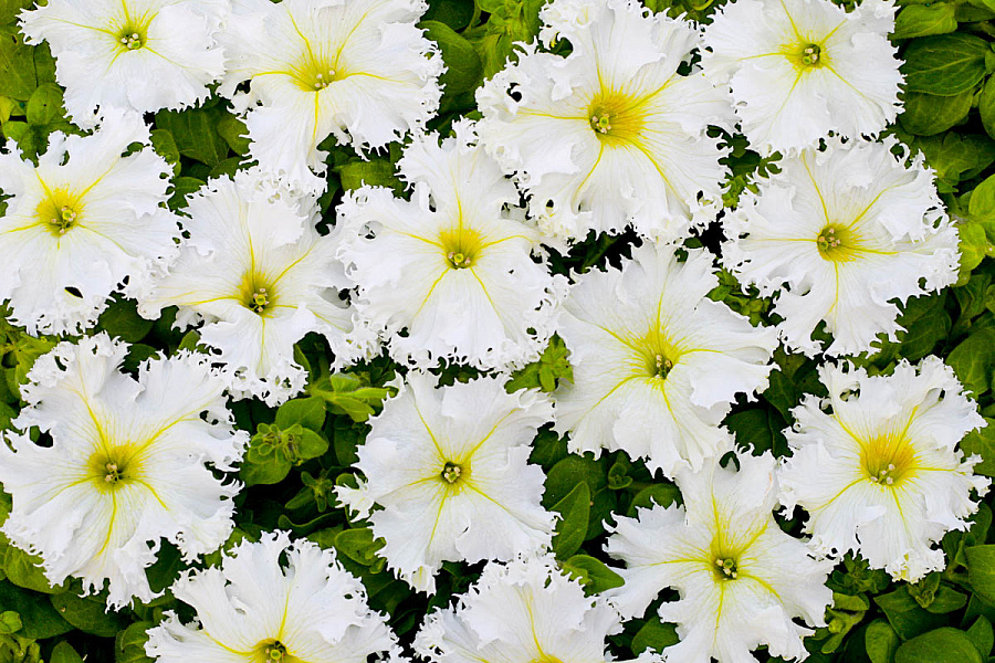 Петуния грандифлора фимбриата крайкови завой - это великолепное растение с белыми цветками, которое поражает своей изящностью и нежностью. Ее стебель прочный и устойчивый, достигая высоты до 30-35 см, а диаметр цветка может достигать 8 см. Листья петунии имеют элегантную форму, что делает ее еще более привлекательной.