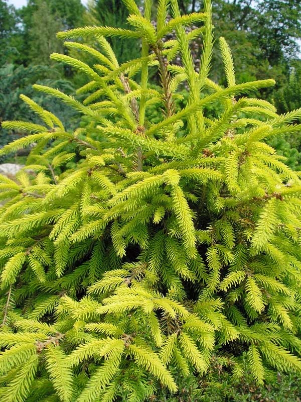Саженцы Ели обыкновенной Конка (Konca) – это высокая ель конической формы, которая достигает 8-10 метров в высоту. Отличается золотистым окрасом хвои. Привитое растение растет быстрее и ветви имеет мощнее, чем собственнокоренное. Также привитые растения имеют более интенсивную окраску. Ель обыкновенной Конка в раннем возрасте может столкнуться с весенним подгоранием. На открытом освещенном солнцем месте колючка начинает белеть. Дерево может расти на солнце и в полутени. Предпочитает дренированный, плодородный грунт и обильный полив в период засухи. Но заболачивания лучше не допускать. Морозоустойчива.