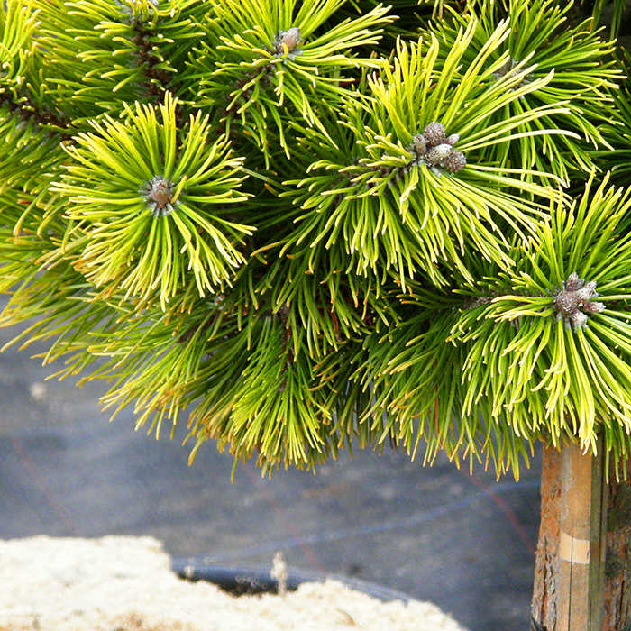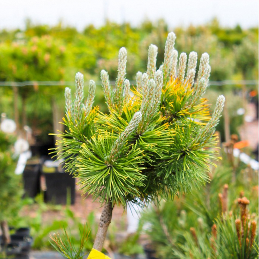 Саженцы Сосны горной Карстен на штамбе (Carsten, Pinus mugo) относятся к карликовому виду, высотой не более 1 метра. Крона компактная, подушковидная, достаточно плотная. Ее диаметр 150 сантиметров. Ежегодный прирост не превышает 6 сантиметров.