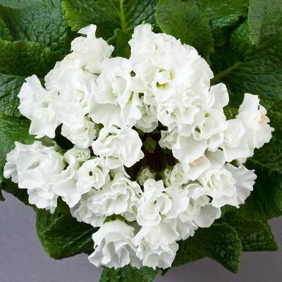 Примула махровая примлет вайт - это изысканное растение с белоснежными цветками, которое поражает своей красотой и изяществом. Ее стебель достигает высоты 13-15 см, что делает ее идеальным выбором для групповых и одиночных посадок. Листья примулы имеют форму сердца и создают уютный зеленый ковер вокруг цветков.