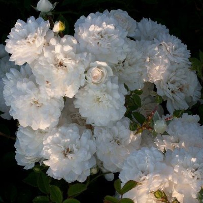 Саженцы розы флорибунда Сноувайт (Snow White) относятся к декоративным кустарникам, подходящим для оформления бордюров, озеленения участка и срезки. Лучше всего сажать куст в групповых посадках. Это один из лучших сортов среди белых роз. Растение предпочитает расти на рыхлых суглинистых почвах с плодородным грунтом. Высота куста достигает до 60 сантиметров. Цветочки среднего размера, диаметром 4-7 сантиметров. Лепестки белоснежного оттенка, ближе к центру – кремового. В одном соцветии – 5-6 цветков. Бутоны распускаются в июне. Прекращает роза цвести к сентябрю.