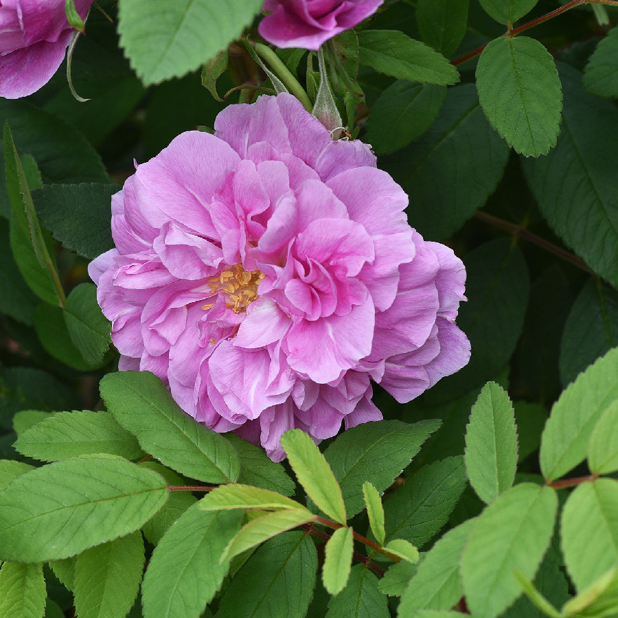 Саженцы розы парковой Therese Bugnet отлично растут на солнечных и частично затененных участках с плодородной, увлажненной, нейтральной почвой. Сорт неприхотлив, отличается высокой зимостойкостью и не требует укрытия даже в самые суровые зимы. Куст мощный, высотой до 2 метров и шириной до 120 сантиметров, с многочисленными побегами, которые почти без шипов, но густооблиственные. Цветение продолжается с июня до поздней осени. Цветки диаметром 7-8 см, нежно-розового окраса, полумахровые, с сильным ароматом, одиночные или собраны в кистях по 3-5 штук.